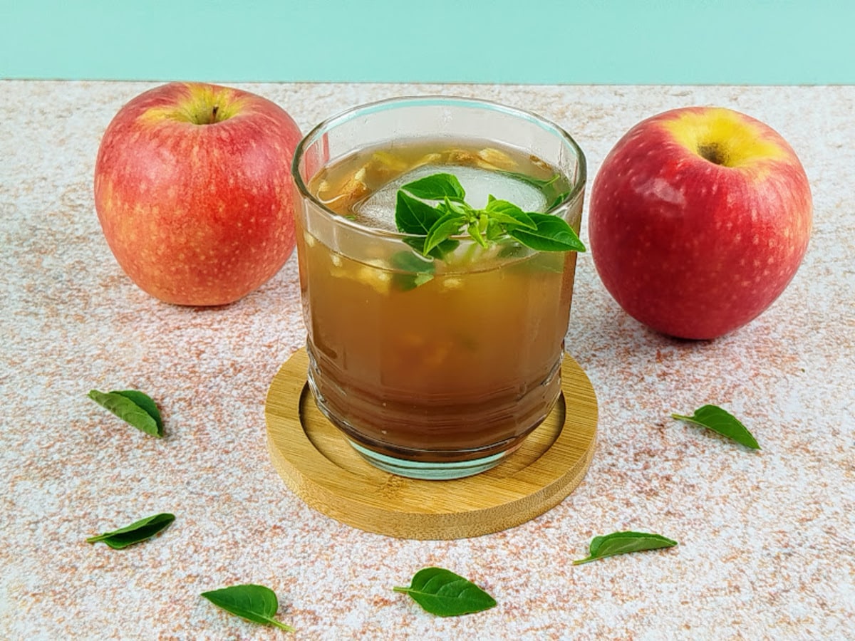 Para um drink refrescante e aromático, utilize chás de maçã bem concentrados e folhas de manjericão frescas, levemente maceradas. Servir a bebida bem gelada e caprichar na decoração com fatias de maçã deixa o resultado ainda mais convidativo.