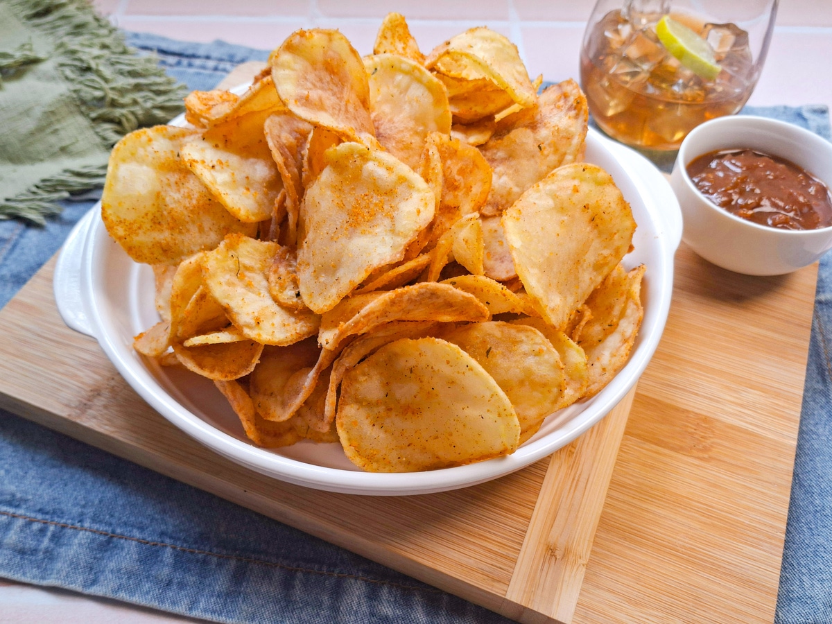Se preferir um estilo mais rústico, você pode manter a casca, desde que higienize muito bem as batatas antes de cortar. A casca adiciona textura, sabor e um visual mais artesanal aos chips. É uma ótima opção para quem busca praticidade e um toque caseiro especial.