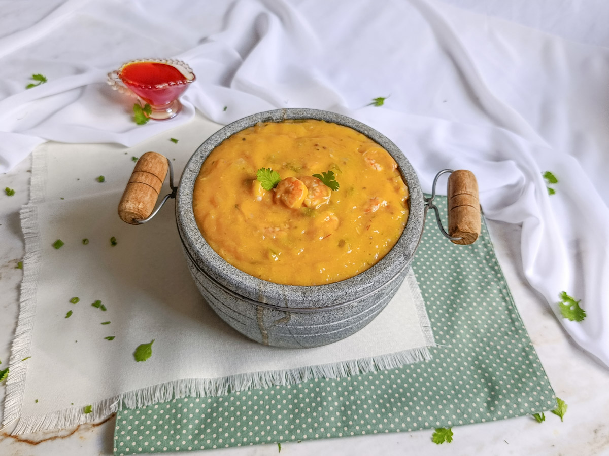 O bobó de camarão com mandioca tem um caldo cremoso e com temperos irresistíveis. Primeiro você precisará cozinhar a mandioca para fazer o creme, que é misturado ao refogado de camarão. Utilizamos o caldo de legumes pronto para temperar, além do azeite de dendê e coentro, mas você pode substituí-los se preferir.