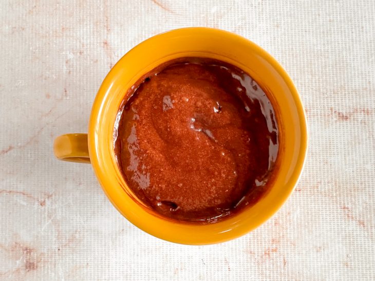Transfira a massa para a caneca, e leve ao micro-ondas por 1 minuto e 30 segundos;