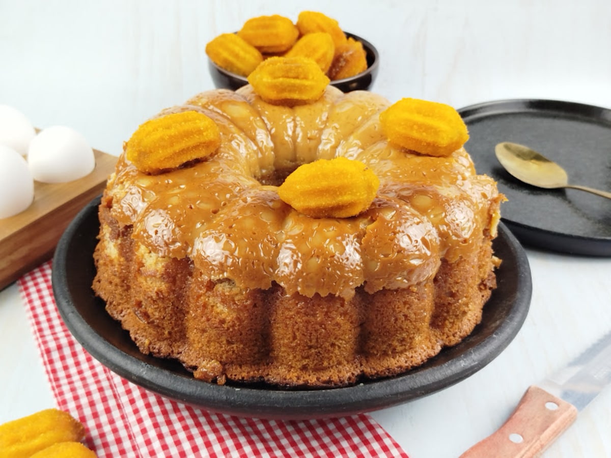 Após assar, retire do forno e deixe o bolo mornar por alguns minutos. Desenforme com cuidado e finalize servindo com um cafezinho. Aproveite!