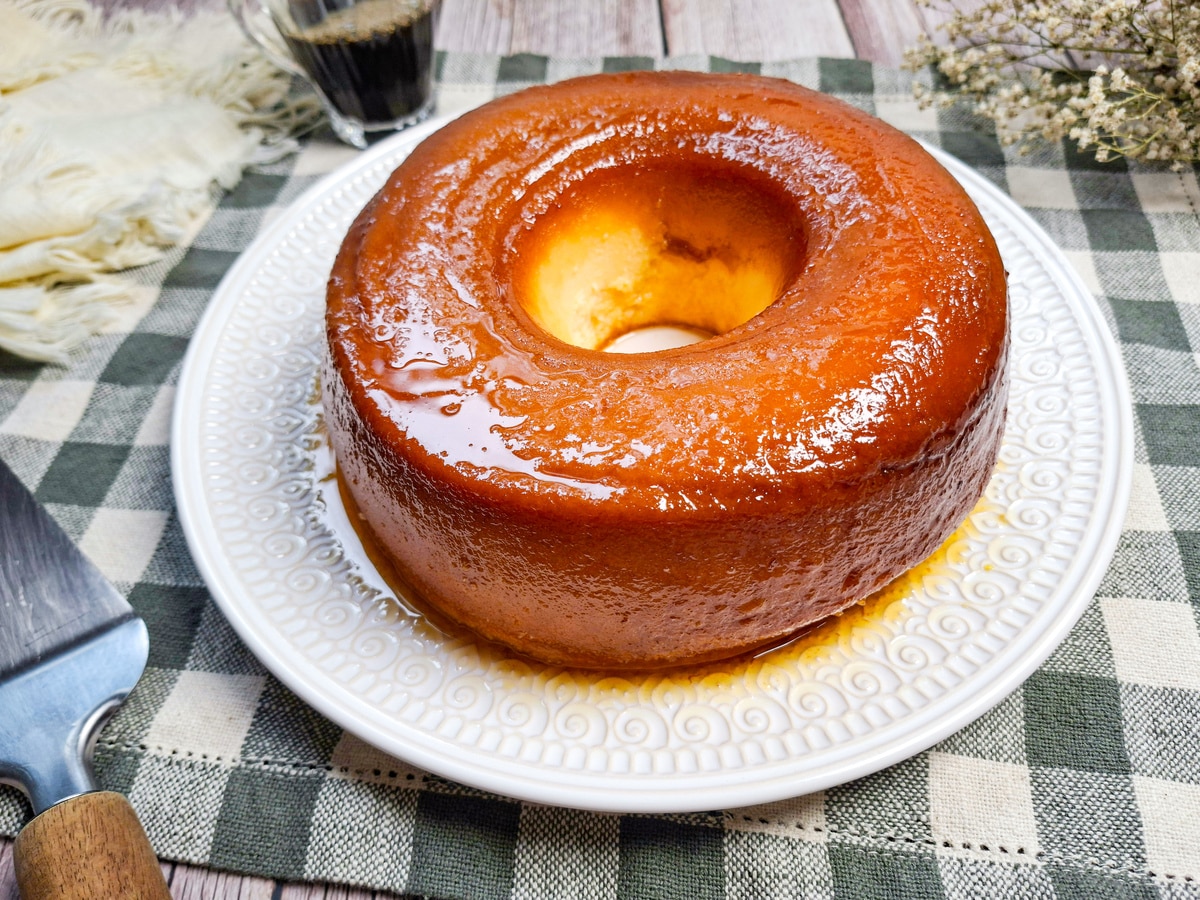 Dá para desenformar mais facilmente se você aquecer o fundo da forma rapidamente em banho-maria. Isso ajuda o caramelo a soltar por completo, deixando seu bolo ainda mais bonito. Sirva gelado para acentuar ainda mais o sabor e a textura. Quer uma versão mais intensa? Use parmesão curado no lugar do fresco. É surpreendente!