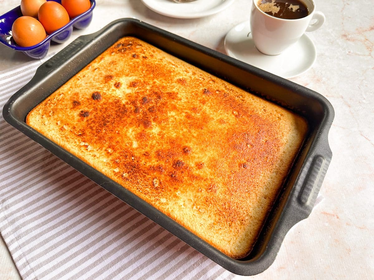 O bolo queijadinha possui um sabor intenso e uma massa molhadinha irresistível! É perfeito para compor um café da tarde caprichado, daqueles típicos de casa de vó. Experimente servir com goiabada, para contrastar os sabores.