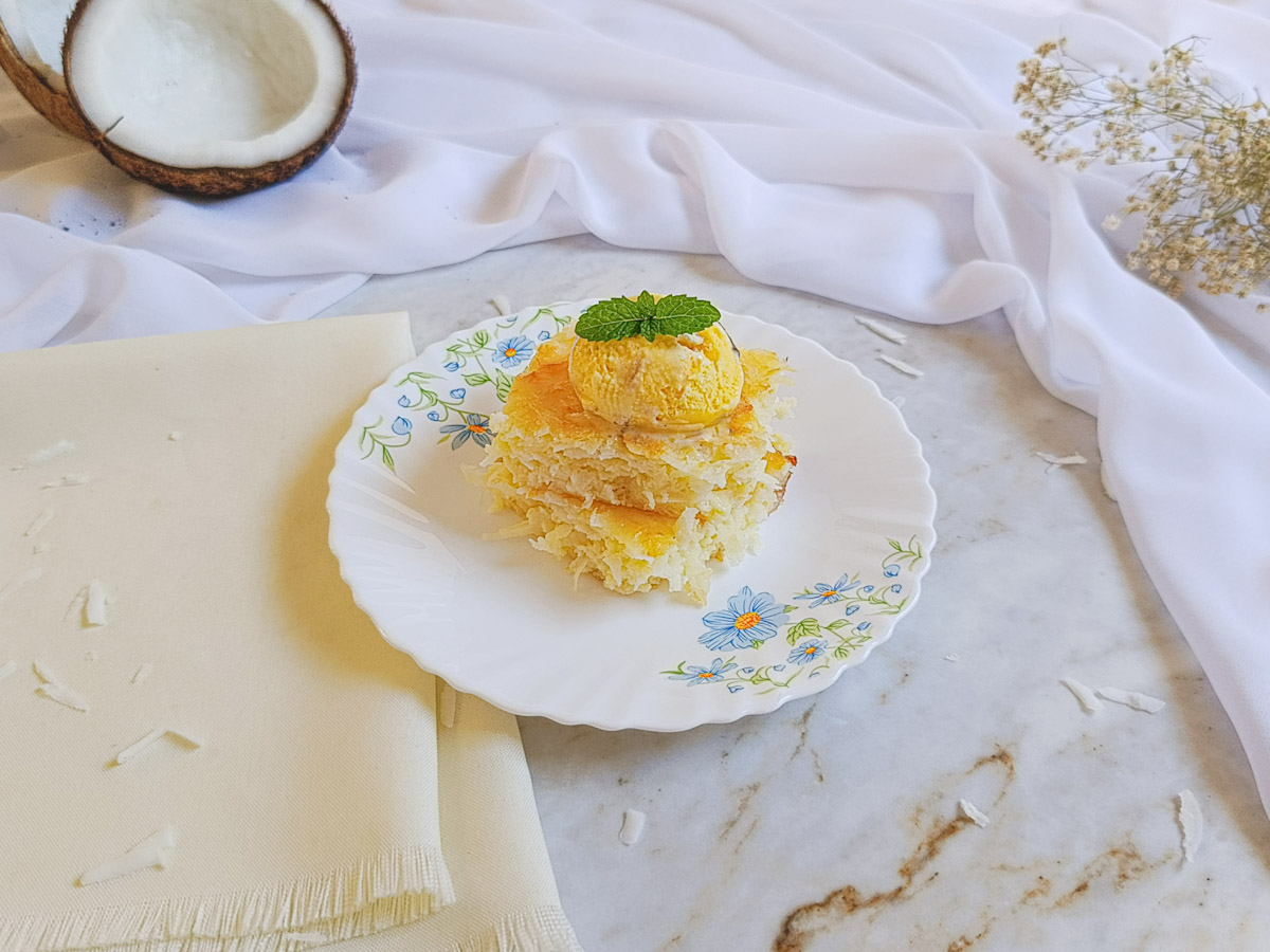 A cocada de forno com leite condensado é uma daquelas sobremesas clássicas que nunca saem de moda! Com preparo simples e sabor marcante, ela fica douradinha por fora e cremosa por dentro. E se quiser deixar ainda mais especial, sirva com uma bola de sorvete de creme.