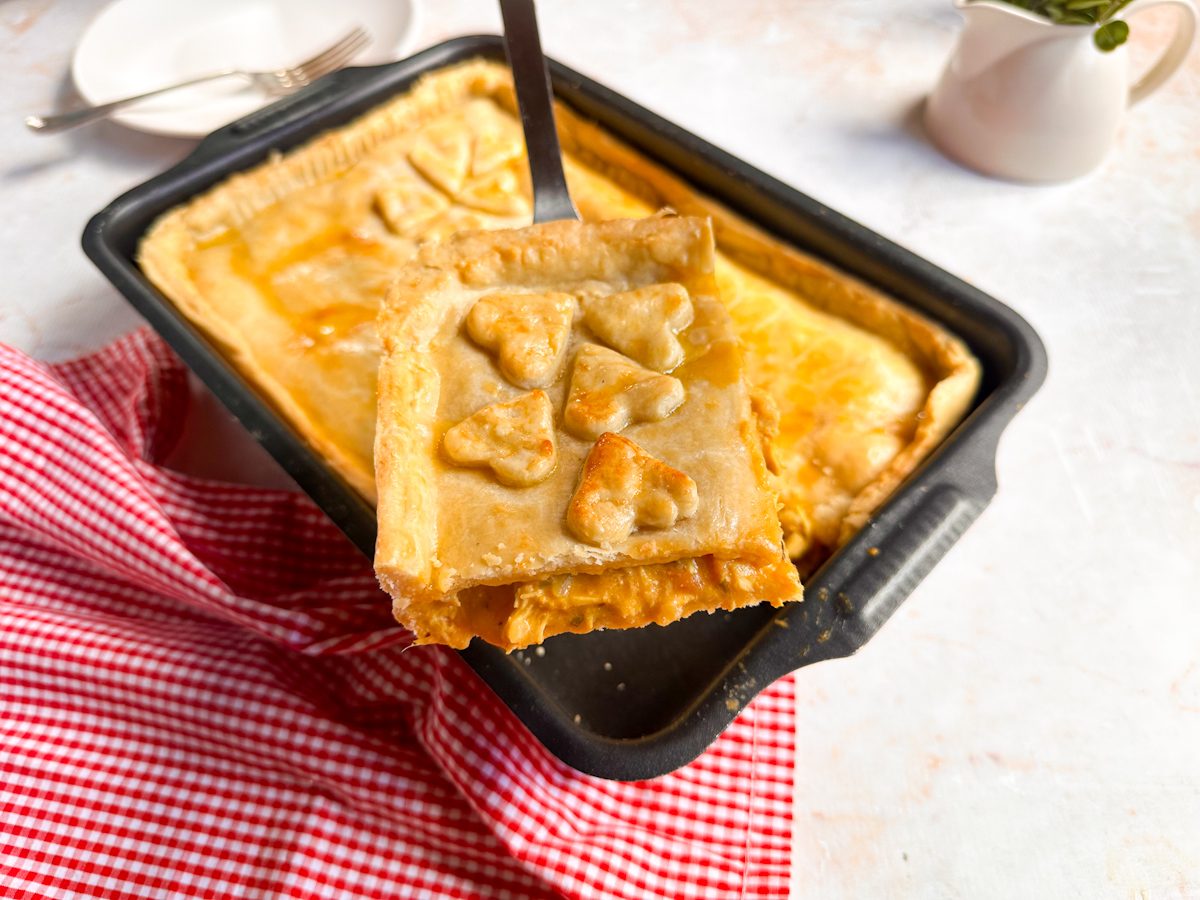 Esse empadão de frango simples é daqueles que fazem sucesso em qualquer ocasião. A massa fica macia e delicada, desmanchando na boca, enquanto o recheio bem temperado e cremoso deixa cada fatia irresistível. É uma receita prática, feita em forma retangular, que rende bem e agrada toda a família.