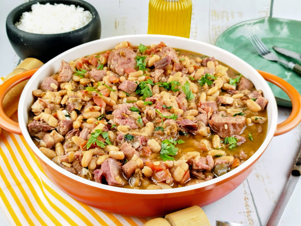 Essa feijoada branca é uma variação deliciosa da versão tradicional e conquista logo na primeira colherada. O feijão-branco absorve bem os sabores das carnes, formando um caldo encorpado, aromático e muito reconfortante. É aquele tipo de receita perfeita para reunir a família, render bastante e garantir elogios do começo ao fim.