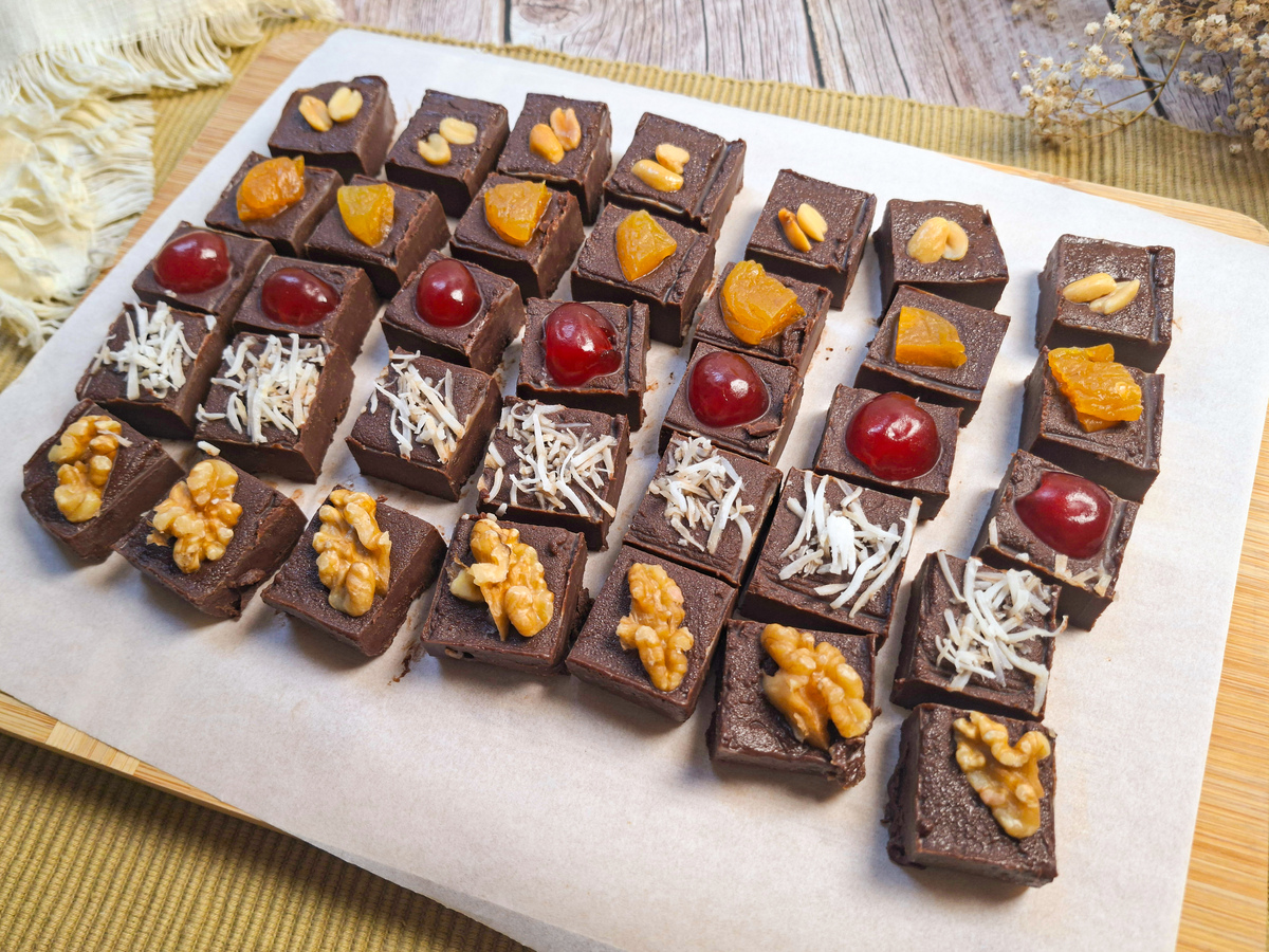 Os toppings devem ser colocados ainda quando o fudge está macio, antes de ir à geladeira, garantindo melhor aderência. Pressione-os delicadamente com as pontas dos dedos para que fiquem firmes após a refrigeração. Assim, cada pedaço terá textura e visual mais atraentes.