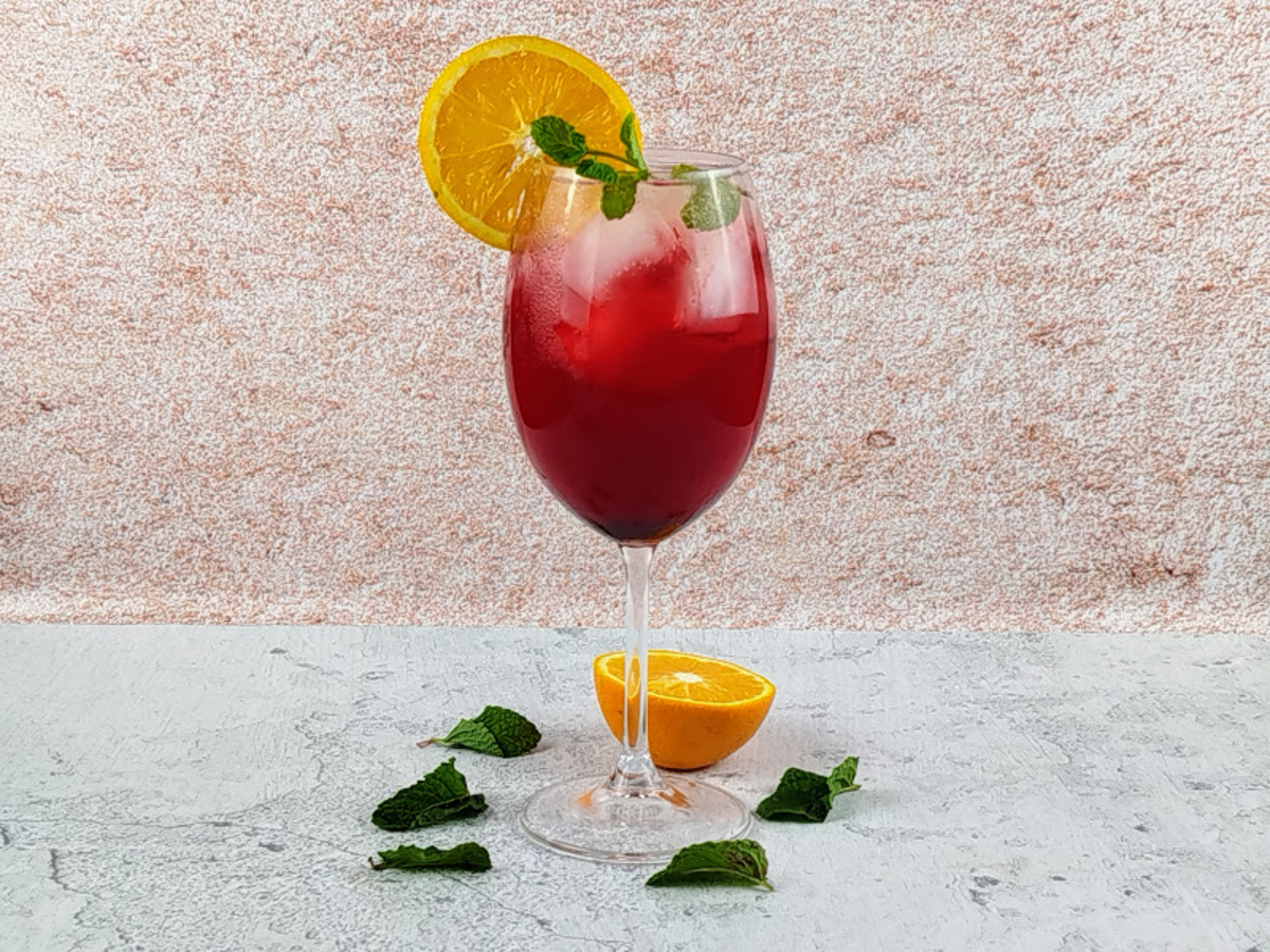 Finalize com uma rodela de laranja e, se quiser, um raminho de alecrim ou hortelã para perfumar. Sirva imediatamente!