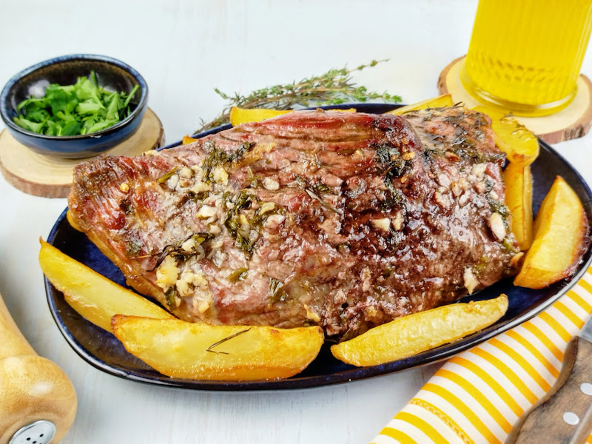 Suave por dentro e dourada por fora, essa maminha assada é pura suculência! A combinação com batatas rústicas e manteiga de ervas transforma esse preparo em um prato completo e cheio de sabor. Perfeita para impressionar em um almoço especial, com poucos passos e resultado garantido.