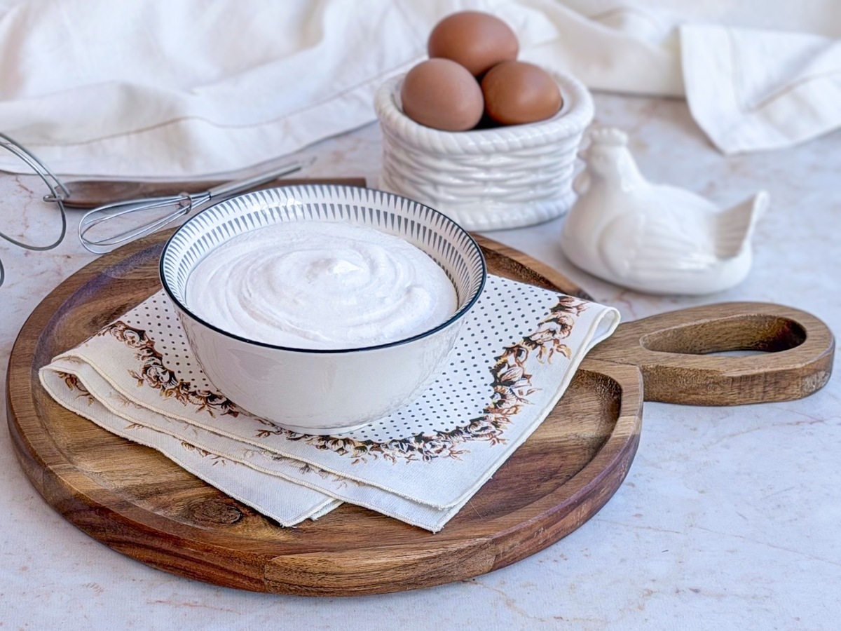Esse merengue para bolo é aquele preparo clássico que conquista pela textura leve e pelo brilho impecável. O método em banho-maria garante segurança e ajuda a dissolver totalmente o açúcar, resultando em um creme macio, estável e fácil de trabalhar. Perfeito para cobrir bolos, tortas e sobremesas que pedem um acabamento bonito e delicado.