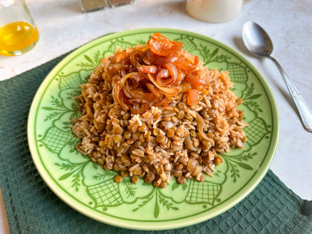 Uma dica importante é deixar a lentilha de molho por cerca de uma hora antes do preparo para melhorar a digestibilidade e acelerar o cozimento. Outra sugestão prática é fritar a cebola no óleo ou até na air fryer para facilitar o processo e garantir textura crocante. A caramelização lenta faz toda a diferença no sabor final e vale a pena ter paciência nessa etapa. Essa receita é deliciosa servida purinha e já fica completa por si só. Mas também combina muito bem com kafta grelhada e tabule fresquinho para uma refeição bem tradicional. Ajuste o sal e os temperos ao seu gosto para deixar tudo ainda mais personalizado.