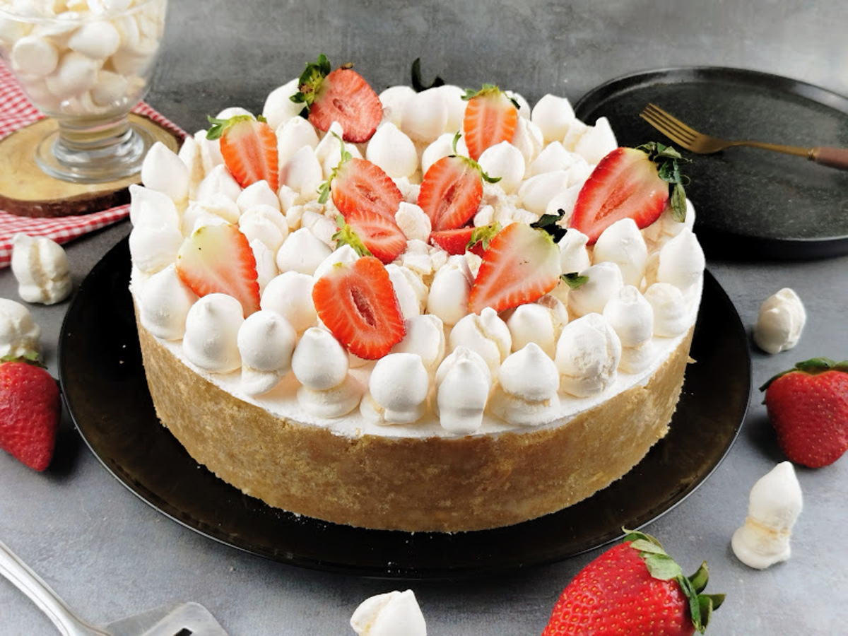Decore com suspiros inteiros, suspiros triturados e mais morangos. Sirva bem gelada e aproveite essa sobremesa linda e cremosa!