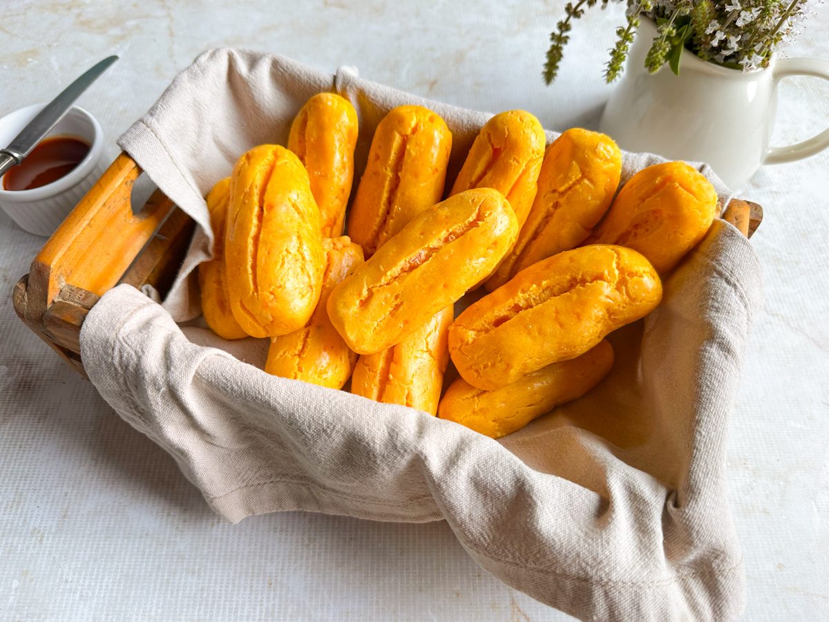 Esses pãezinhos de batata-doce são pequenos na medida certa para matar a vontade de um lanchinho da tarde, sem exageros. Além de práticos, ficam macios e saborosos, sendo uma ótima opção para quem está seguindo uma alimentação mais saudável.
