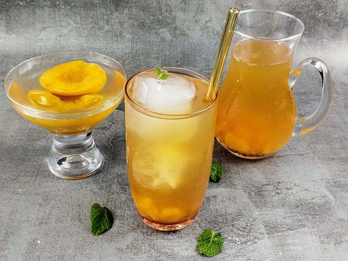 Chás gelados são uma ótima base para explorar diferentes tipos de bebidas, sejam alcoólicas ou no estilo soft drinks. A combinação de pêssego com chá, por exemplo, também fica deliciosa com água com gás no lugar da comum. Para adoçar, utilizamos açúcar, mas o mel também harmoniza muito bem com os sabores dessa receita.