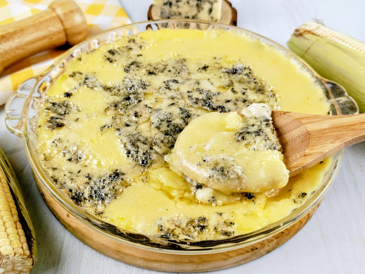 E está pronto! Retire do forno, espere 2 a 3 minutos para firmar e sirva quente. Combina bem com carnes assadas, cogumelos ou legumes salteados.