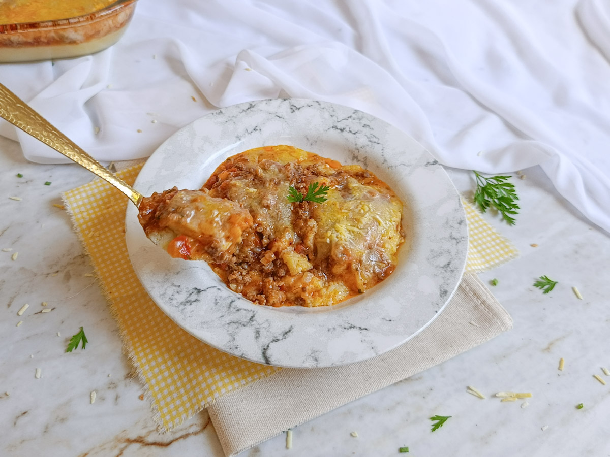 Sabe aquele prato que abraça a gente nos dias mais frios? Essa polenta cremosa com molho de carne moída e queijo é conforto puro. A textura macia da polenta contrasta com o molho encorpado e o gratinado dourado, formando uma refeição simples, caseira e perfeita para reunir a família.