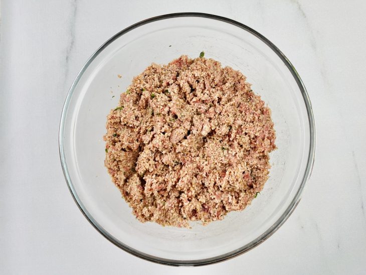 Misture bem, com as mãos, até obter uma massa homogênea, com todos os ingredientes incorporados;