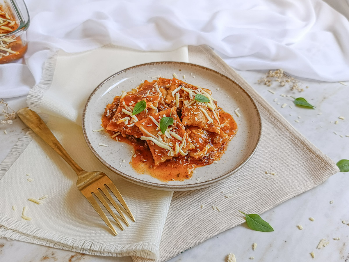 Se sobrar, os raviolis podem ser congelados por até três meses e levados direto do freezer para a água fervente, sem necessidade de descongelar. Para servir, o molho de carne combina perfeitamente, mas a experiência fica ainda melhor com uma boa harmonização. Um vinho tinto é ideal para acompanhar, e para quem prefere bebidas sem álcool, o suco de uva integral é uma excelente escolha. Aproveite também para conhecer outras receitas de massas artesanais aqui do site como o capeletti de carne à puttanesca, não perca essa chance!