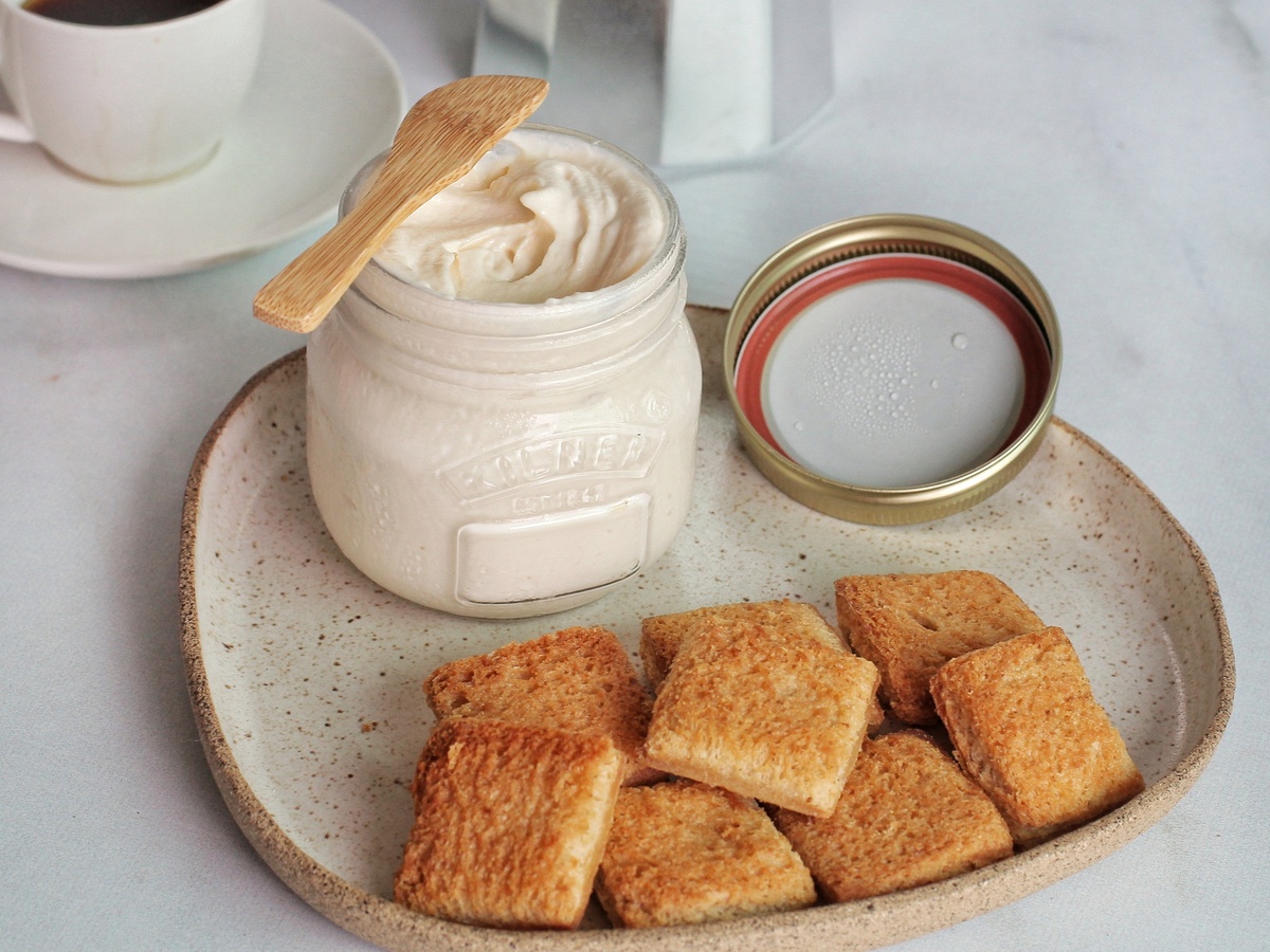 Para alcançar a melhor textura, o requeijão caseiro deve ser retirado da geladeira alguns minutos antes de servir. Nesse tempo, ele fica mais macio, fácil de espalhar e com o sabor mais evidente. Servido assim, revela toda a delicadeza do preparo artesanal e torna a experiência mais aconchegante.