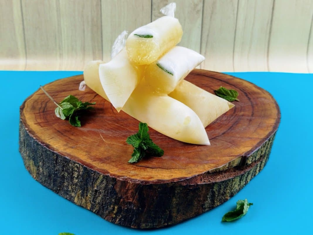 Um sacolé que é a cara do verão: aromático e surpreendentemente refrescante! Feito com infusão gelada de chá sabor abacaxi com hortelã, a mistura ainda é realçada com um toque de limão e um pouco de rum para uma proposta ainda melhor.