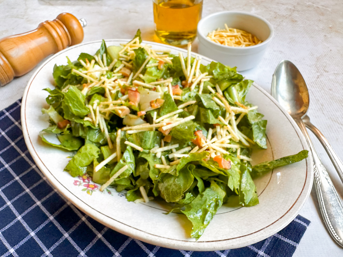 Crocância, sabor e praticidade em uma salada que surpreende! A mistura do amargor suave da chicória com o toque defumado do bacon e a acidez do molho deixa tudo equilibrado e delicioso. Sirva na hora para manter a textura perfeita.
