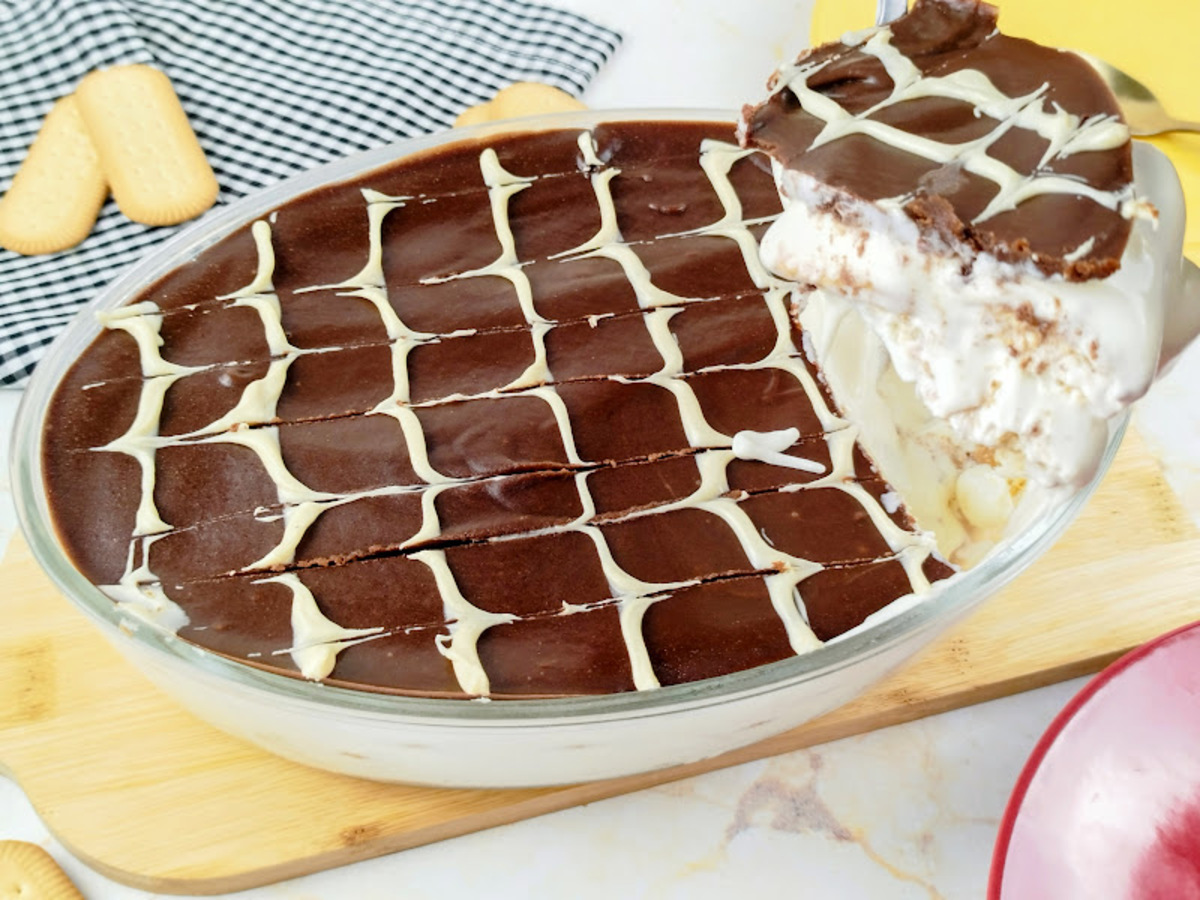 Na montagem, substitua parte do leite por leite aromatizado com baunilha para um aroma mais envolvente e delicado. Entre os biscoitos, vale intercalar uma camada fina de ganache meio amargo, criando contraste com o creme claro. Essa combinação deixa a sobremesa mais equilibrada e com sabor mais profundo.