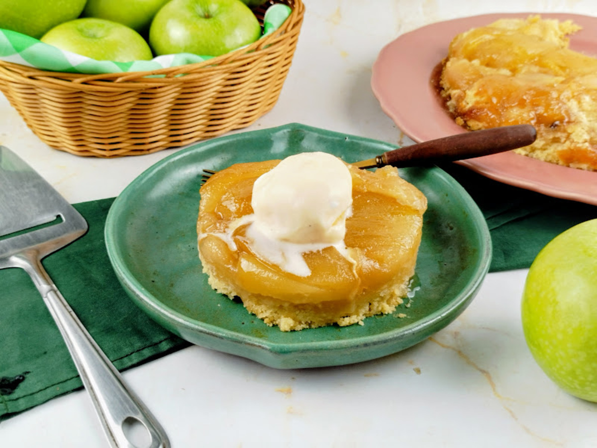 Retire do forno e deixe esfriar por 10 a 15 minutos antes de desenformar. Vire a torta com cuidado sobre um prato de servir e finalize com uma bola de sorvete, se desejar!
